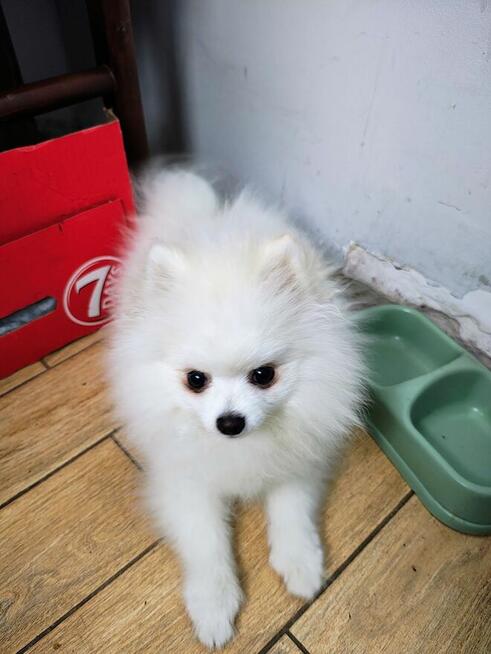 Sprzedam szpica 5 miesięcznego białego ze względu na uczulenie silne dzieci ,piesek z rodowodem zaszczepiony ,chip